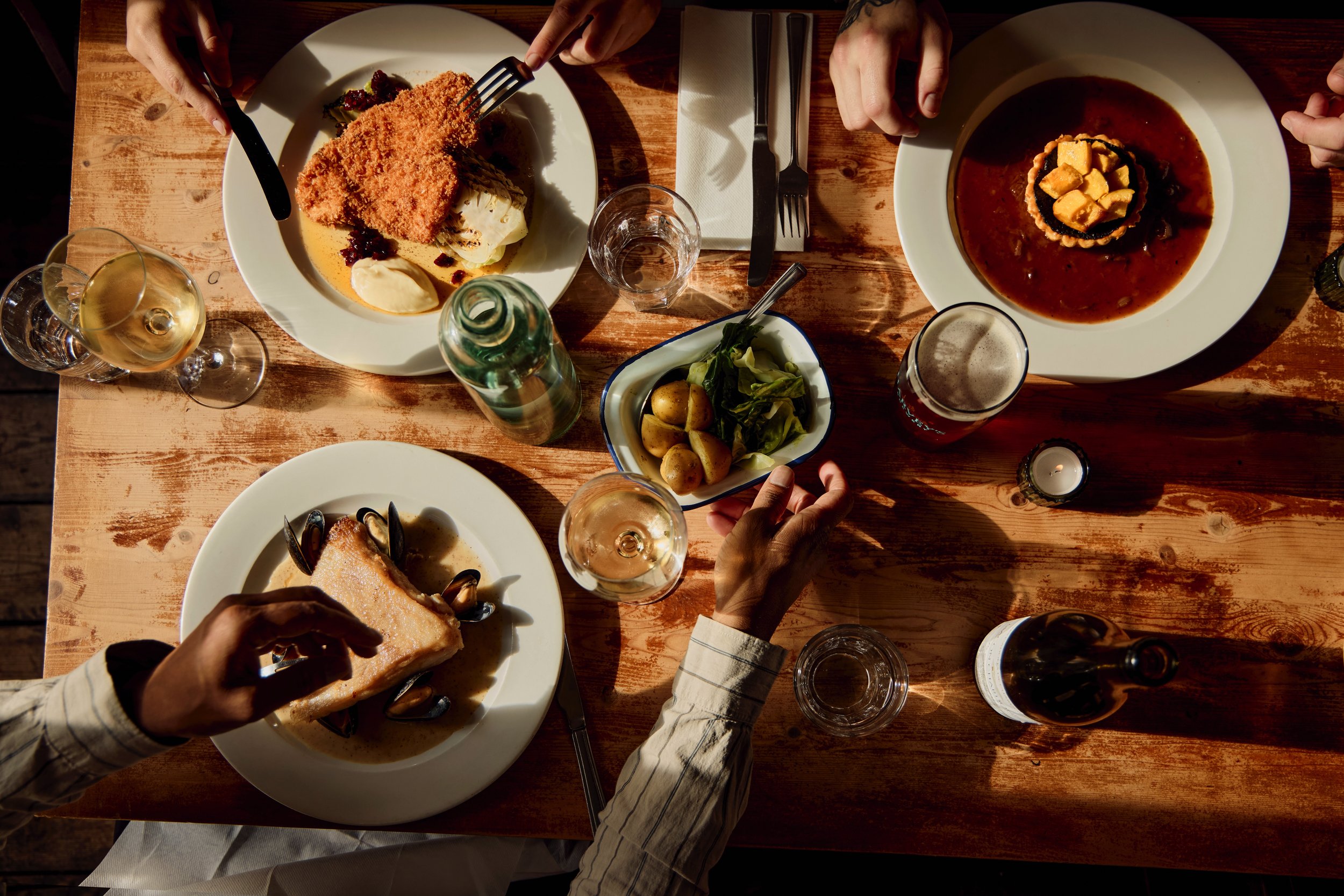 This December, our kitchen leans into the comfort and character of the season. From cold-smoked chalk stream trout and Biddenden turkey schnitzel to sticky Christmas pudding with warm brandy custard, our set menus celebrate the very best of local winter produce.